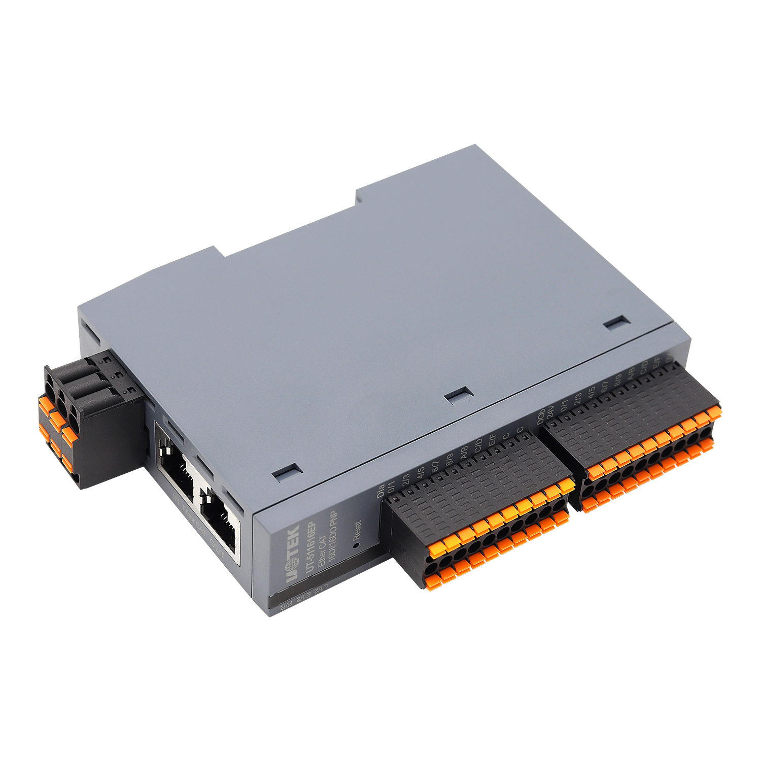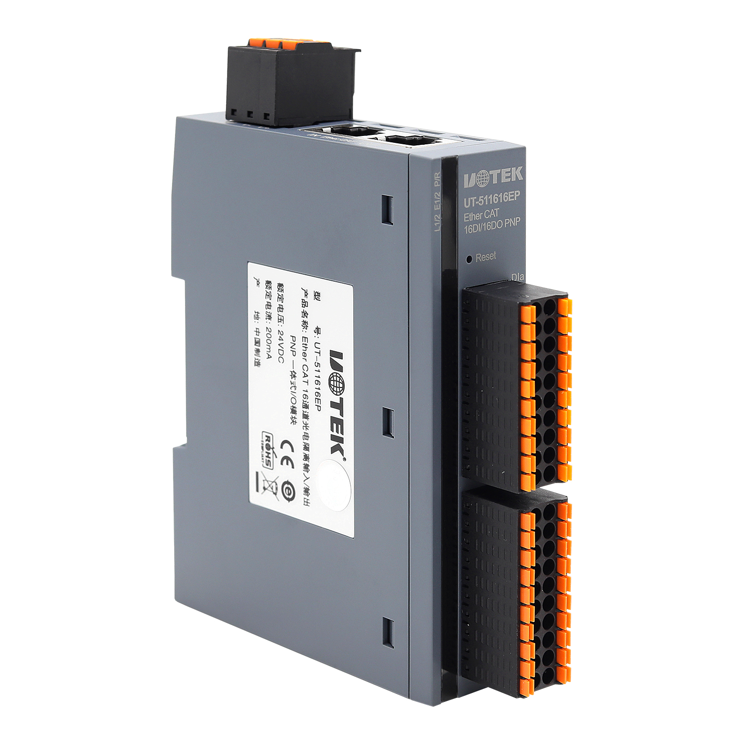 UT-511616E基于2.1EtherCAT總線控制協議光電隔離數據并行輸入輸出I/O控制器是16通道數據輸入,16通道數據輸出,每個數據輸入或輸出通道相類似若干電腦接口。